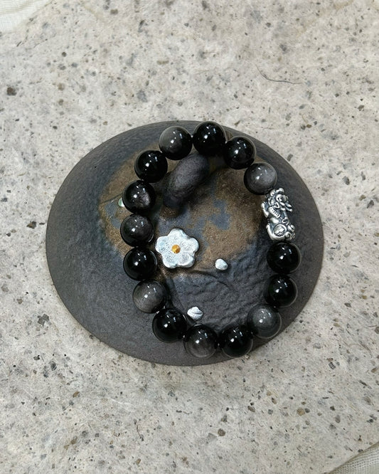 The Night Is Yet Young — Obsidian & 925 Silver Bracelet