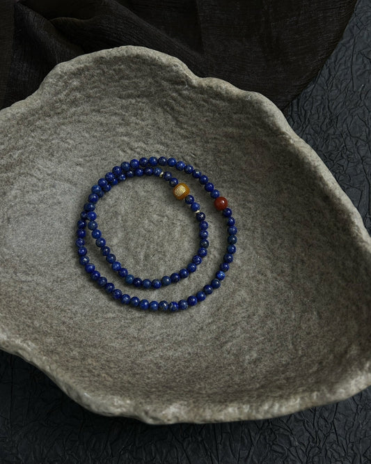 The Midnight Mantra Wrap — Lapis Lazuli, Beeswax Amber, South Red Agate & 925 Silver