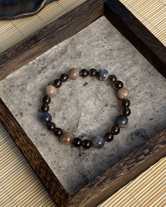 Sparse Shadows — Obsidian, Shell & Crystal Bracelet