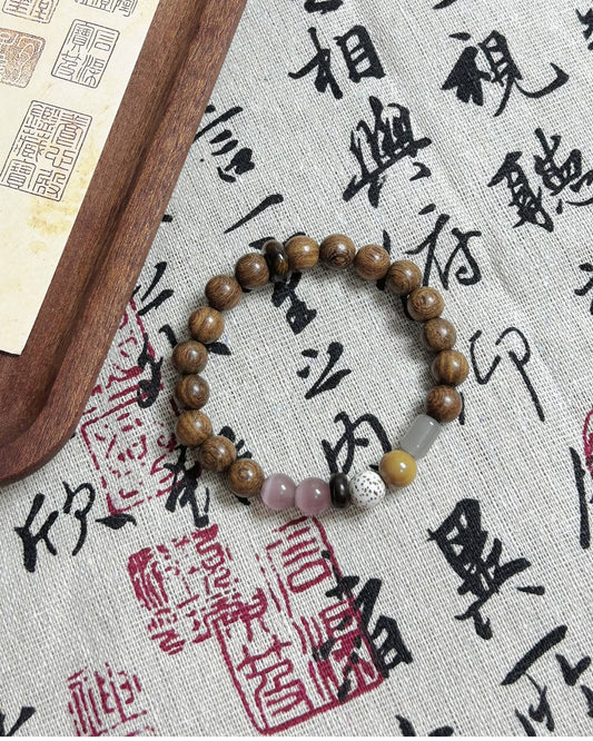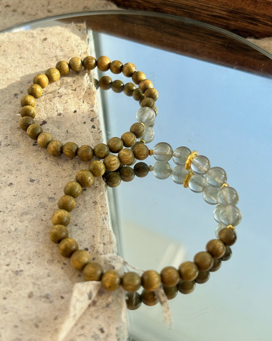 Serendipitous Harmony — Green Rutilated Quartz & Agarwood Bracelet