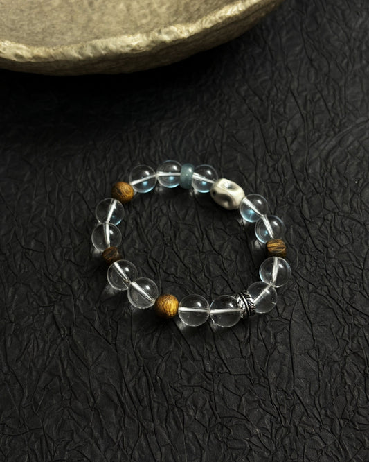 Zen Garden Crystal Strand — Rock Crystal, Agarwood & 925 Silver