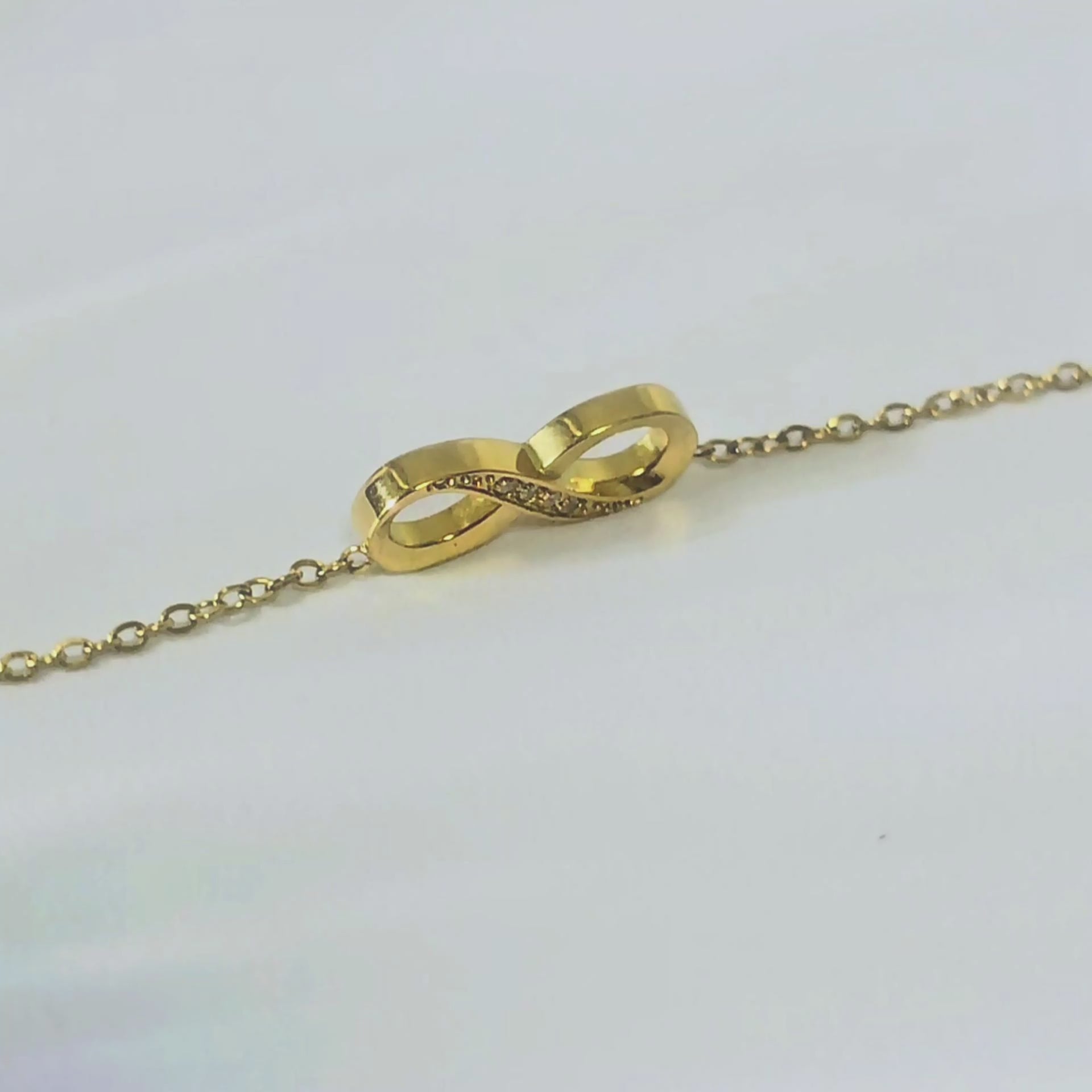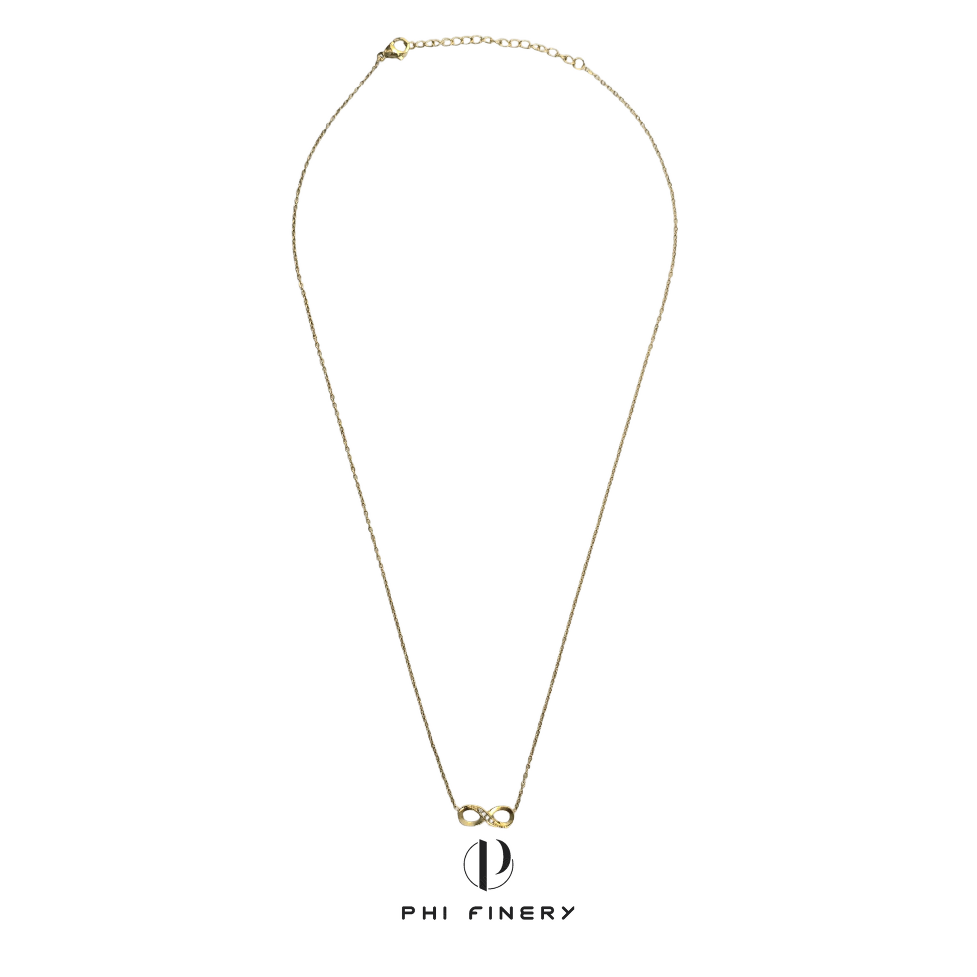 A delicate infinity pendant on a fine gold‑tone chain, symbolizing unbreakable bonds and limitless possibilities. Minimal yet elegant with a hint of sparkle, it’s perfect for everyday wear and a meaningful gift for someone you love.